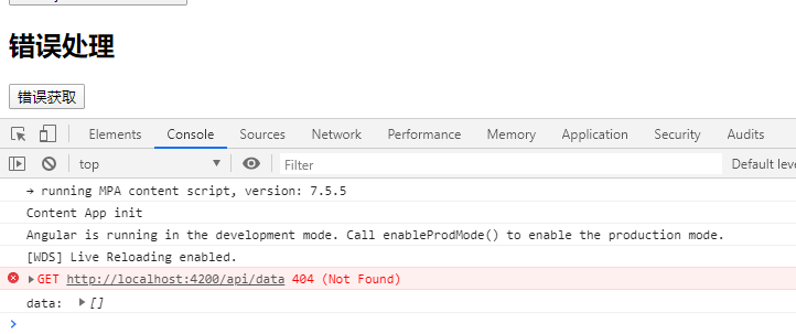 启动该项目,打开页面并点击按钮,出现这样的结果: