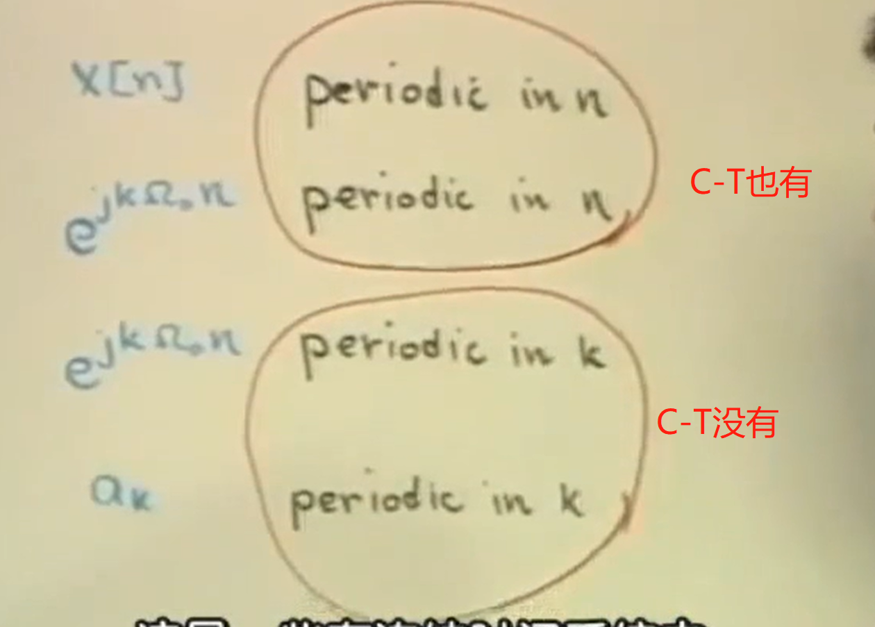 离散傅里叶级数和连续傅里叶级数的区别:离散case的复指数随着周期连续变化,使得k为有限元取值,有周期性
