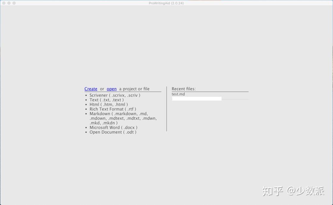 由于 MacOS 系统无法支持软件插件,我们只能打开软件本体。打开后,非常纯净,可以选择打开现有文件或在软件中直接撰写。顶部工具栏显示了这个程序的所有功能。