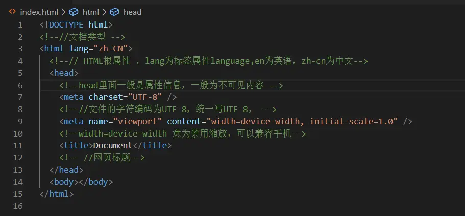 起手式个人理解为基本代码,所有的HTML文件都会包含的基本结构代码,使用快捷键可以快速呼出,可以节省时间,在编译器新建index.html文件,然后输入 ! 之后等选项飘出,按tab键即刻自动补全。以下为在VScode里操作完的效果图。