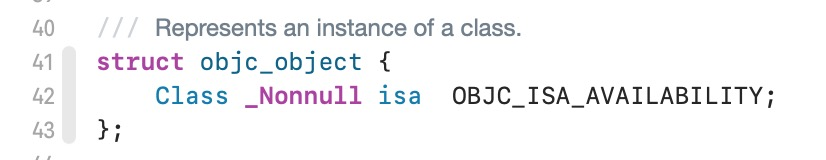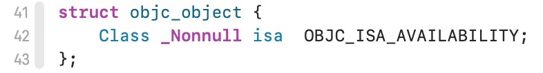 为什么呢?因为对象继承自NSObject,NSObject在底层的实现是结构体objc_object,里面只有一个isa成员变量,那么对象的首地址指向的第一块就是isa所在。