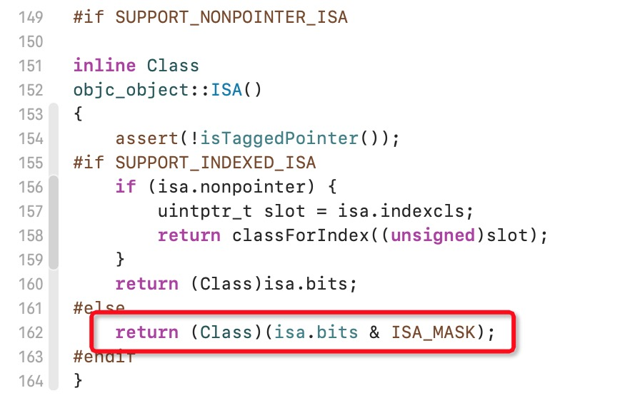 ISA()里面根据判断条件就会走到最后的一行,就是isa.bits和ISA_MASK做一下与运算
