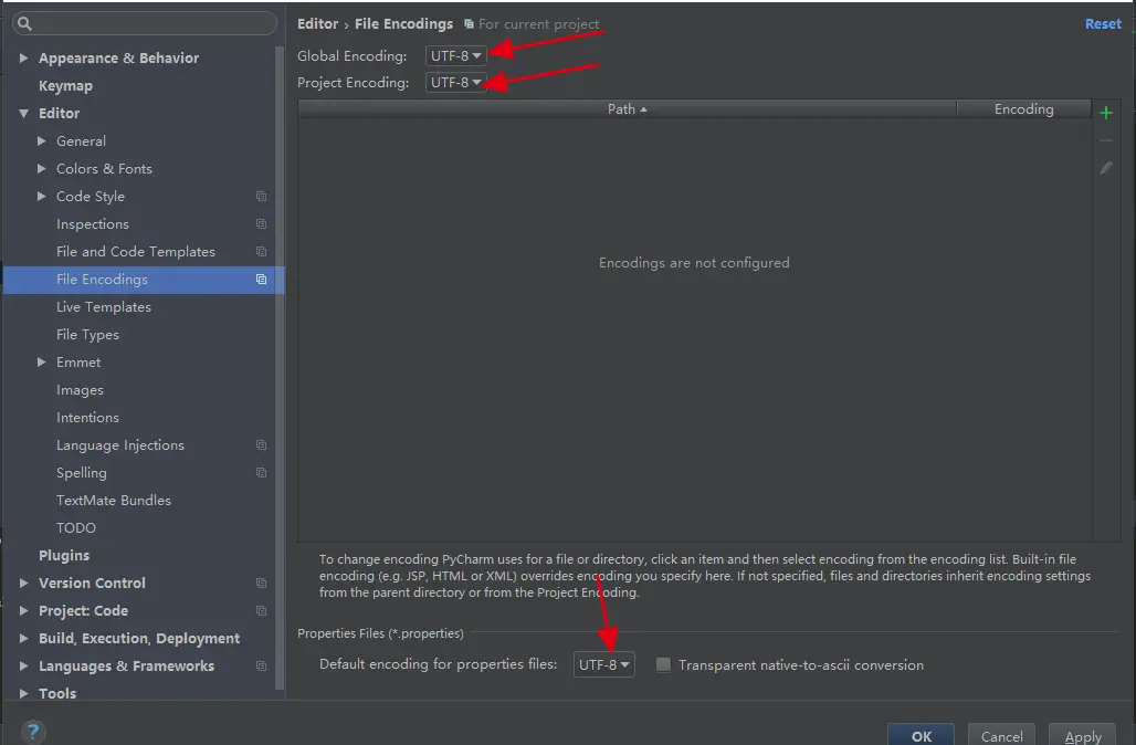 如果控制台出现乱码,可以到 settings --> Editor-->FileEncodings 将 Global Encoding、Project Encoding、Default encoding for properties都为UTF-8