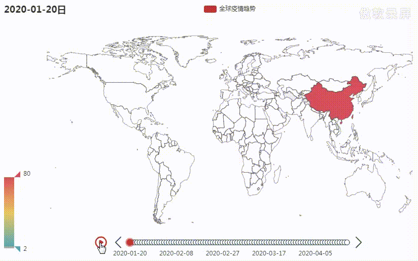 目前全球疫情仍然比较严重,为了能清晰地看到疫情爆发以来至现在全球疫情的变化趋势,我绘制了一张疫情变化地图,完整代码共 230 行,需要的朋友在公众号回复关键字 疫情地图 即可。废话不多说,先上图