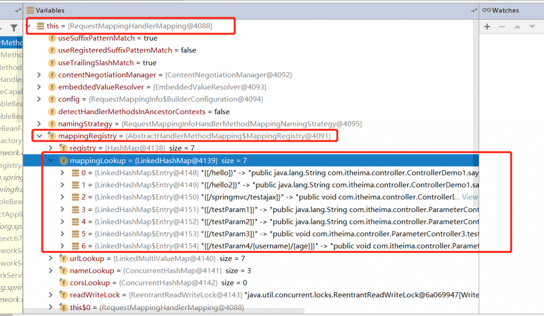 01 02 03 04 05 06 07 08 09 10 11 12 13 14 | public Map<T, HandlerMethod> getHandlerMethods() { this.mappingRegistry.acquireReadLock(); try { return Collections.unmodifiableMap(this.mappingRegistry.getMappings()); } finally { this.mappingRegistry.releaseReadLock(); }}getMappings()代码内容public Map<T, HandlerMethod> getMappings() { return this.mappingLookup;} |