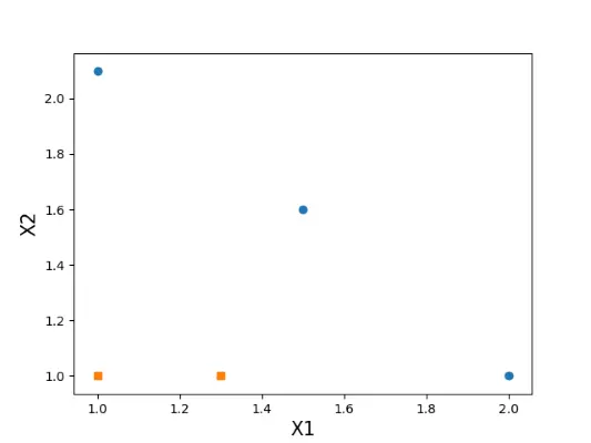 之所以用单层决策树来构建弱分类器,是因为在下面这份数据集中,单层决策树能更好的体现"弱"这个性质。