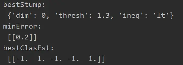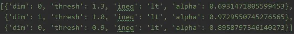 bestStump['alpha'] = alpha # 将弱分类器权重存入树中