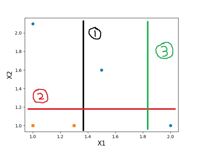 单层决策树是一种简单的决策树,它仅仅基于单个特征来做决策,也就是得到一个信息增益之后会舍弃其他特征,所以单层决策树只有一次分裂过程,实际上也是一个树桩。