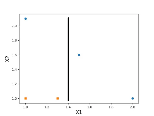 classEst = stumpClassify(dataMatrix, classifierArr[i]['dim'], classifierArr[i]['thresh'], classifierArr[i]['ineq'])