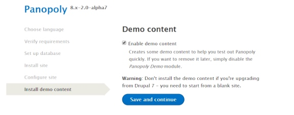 安装程序允许我们在Drupal站点上添加一堆演示内容项以测试布局。以后可以通过禁用Panopoly演示模块轻松删除它。安装完成后,您可以使用站点管理员凭据登录。