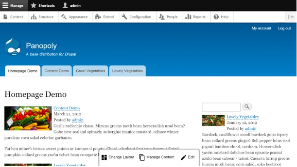 Panopoly旨在通过提供从前端直接编辑站点的内容和布局的功能,而无需浏览管理菜单,从而向最终用户隐藏所有复杂的Drupalism。这里要了解的重要一点是,它更多是一种“基础发行版”,它提供了构建发行版的框架。在它之上建立了许多流行的发行版本,包括Open Atrium,Open Academy,Open Restaurant等。