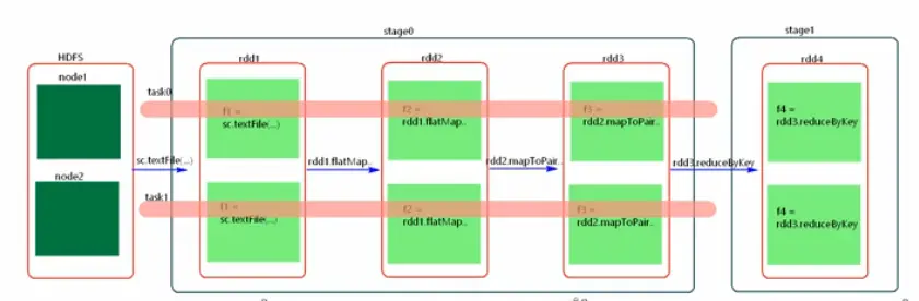 一个Job会被拆分很多组任务,每组任务被称为Stage(就像Mapreduce分Map Task和Reduce task一样)