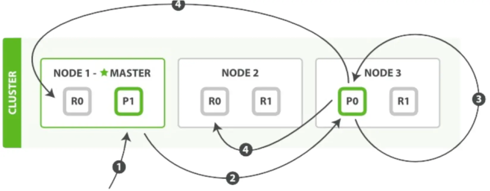 因为一个搜索可能涉及保存在不同节点上的数据,此时由协调节点进行协调(收到客户端请求的节点即为协调节点)。
