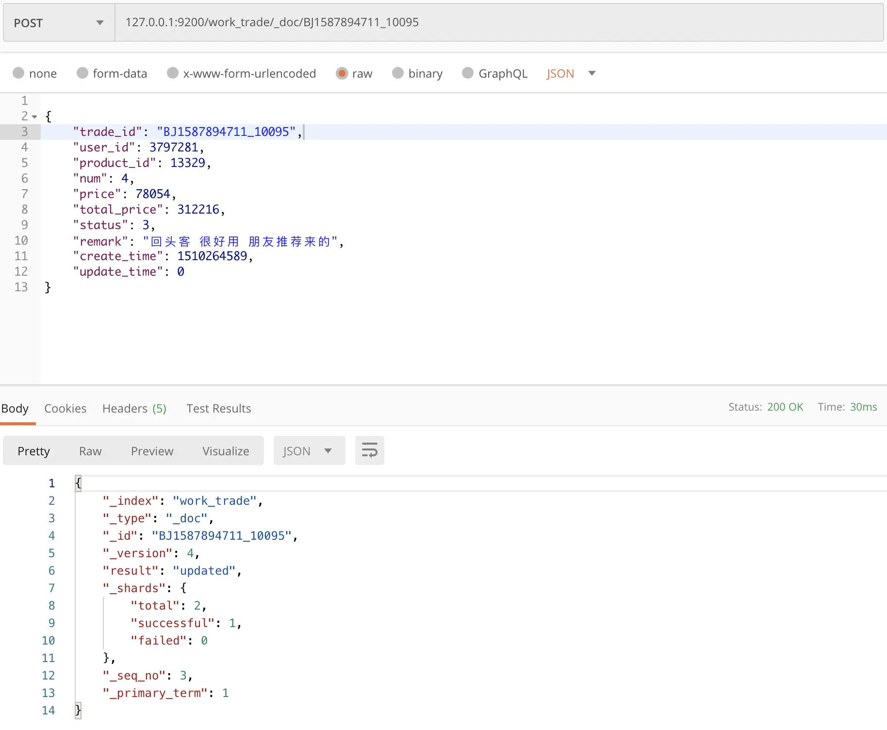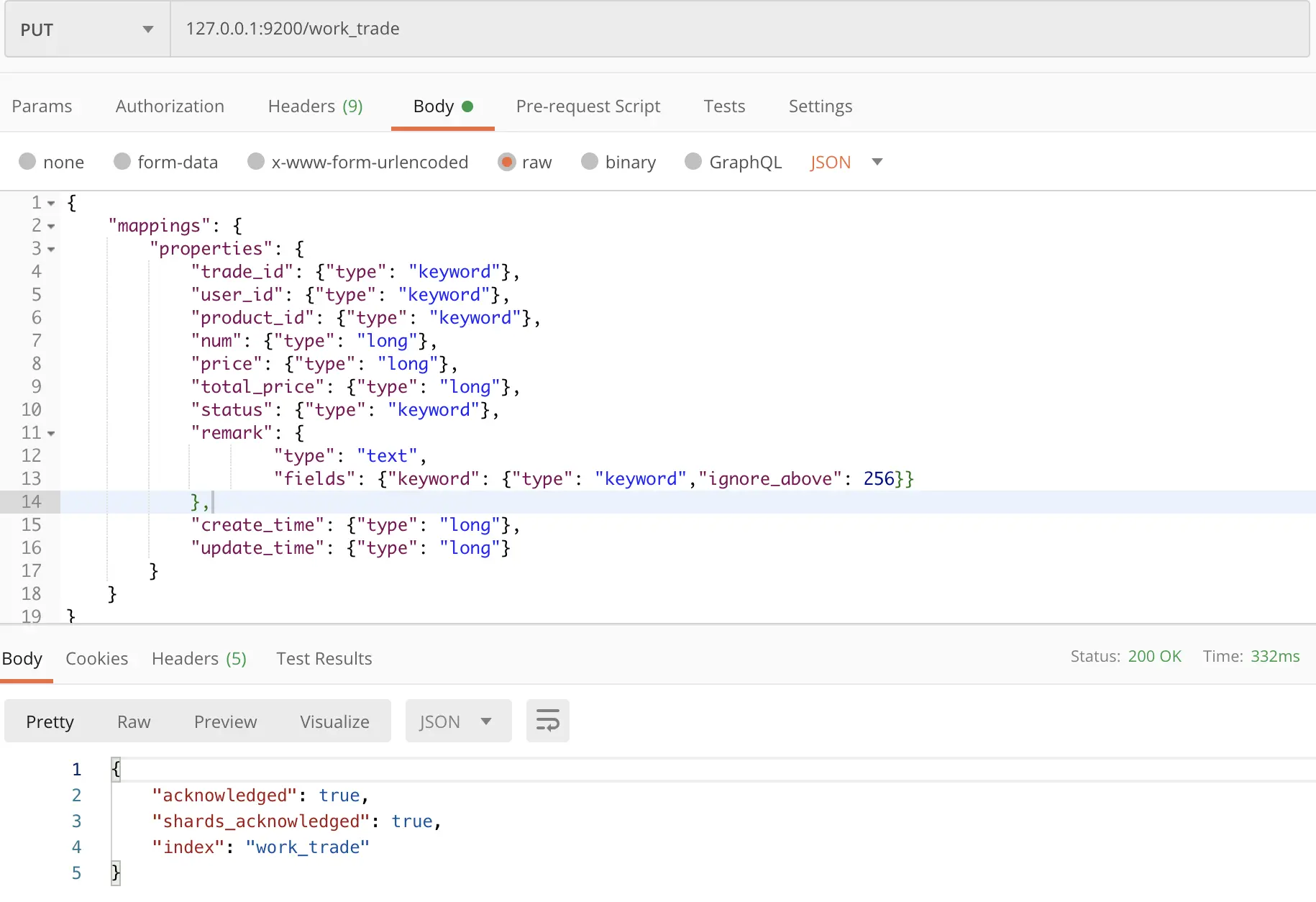 此处给正在阅读的你留一个问题:为什么status要设置成keyword类型?为什么不是long、integer、short?(答案会在之后不定期写的另一篇博客中讲到,暂时借鉴博客elasticsearch.cn/article/446)