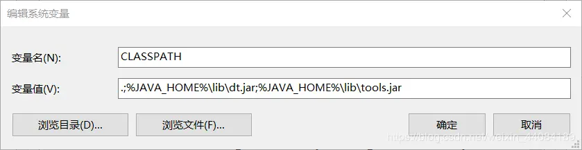 5.新建变量名:CLASSPATH ,变量值: .;%JAVA_HOME%\lib\dt.jar;%JAVA_HOME%\lib\tools.jar
