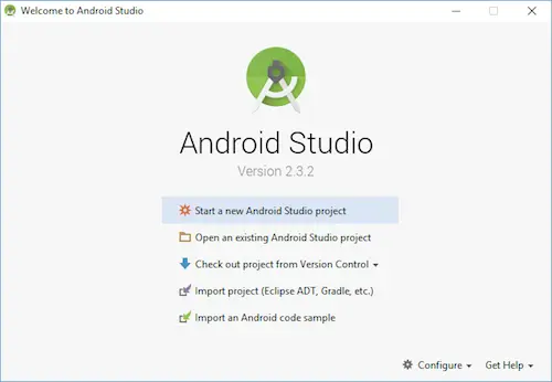 打开Android studio后,进入相关配置界面,第一次安装时,没有以往配置的数据,所以选择第二个选项。如果以往安装过AS,有过他的配置,那么可以选择第一个,导入配置。