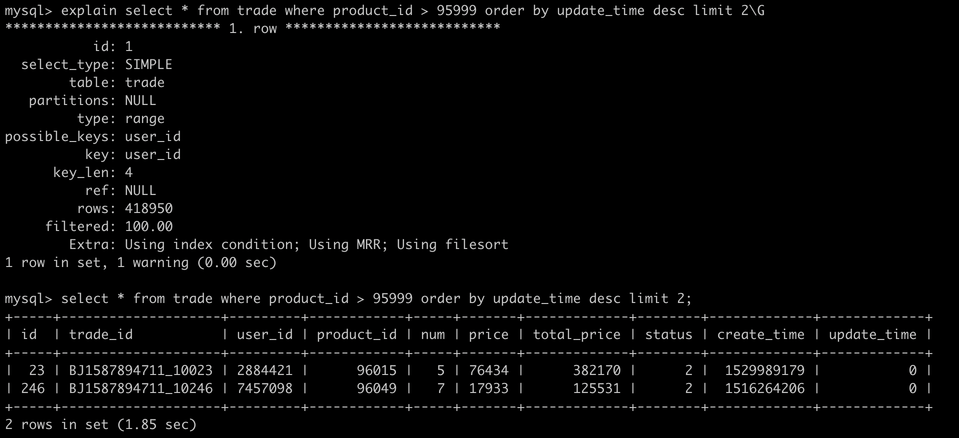 key product_id (`product_id`), key uid_ctime (`user_id`, `create_time`),