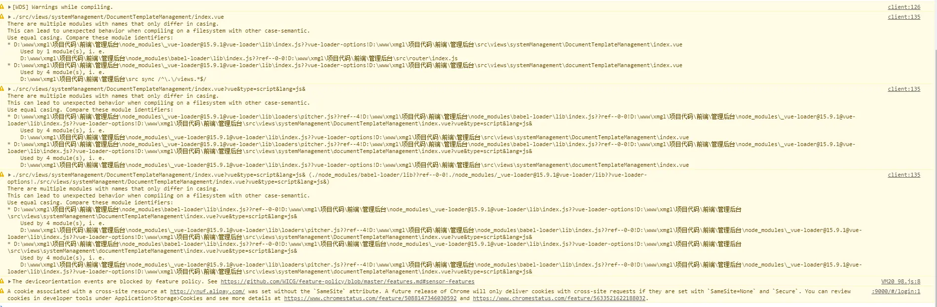 主要原因就是路径大小写、或者文件、文件名大小写错乱, 如: ImportInfo 的写成 importInfo