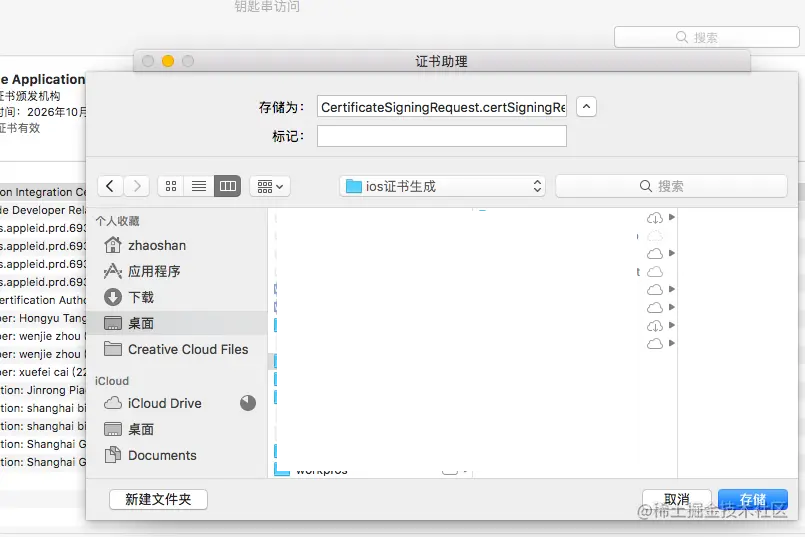 2.4 上面填写完毕点击继续,到下图界面,点击存储就生成了CertificateSigningRequest.certSigningRequest文件