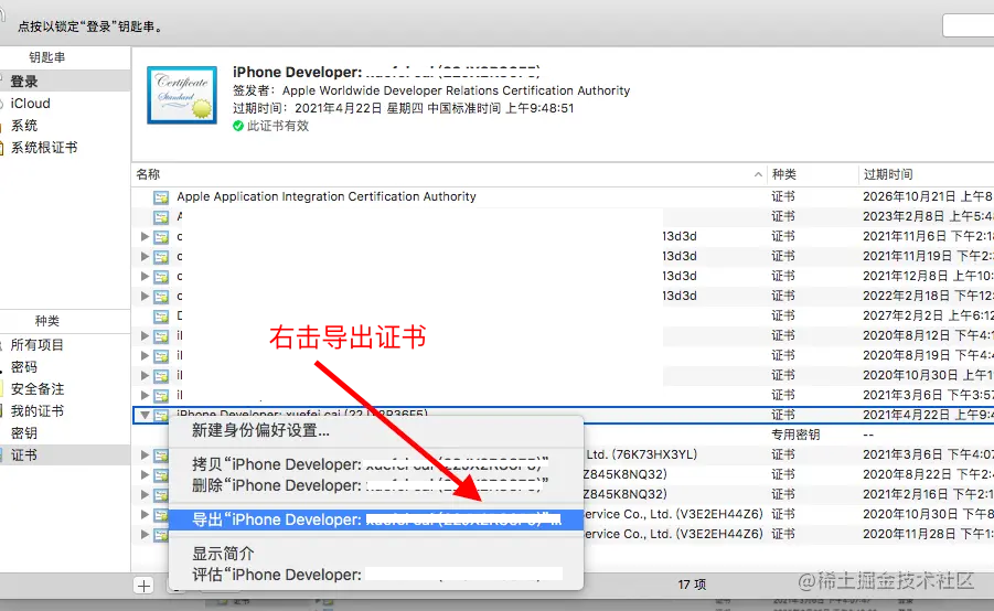 3.7 点击下载后,去钥匙串中找到刚下载的