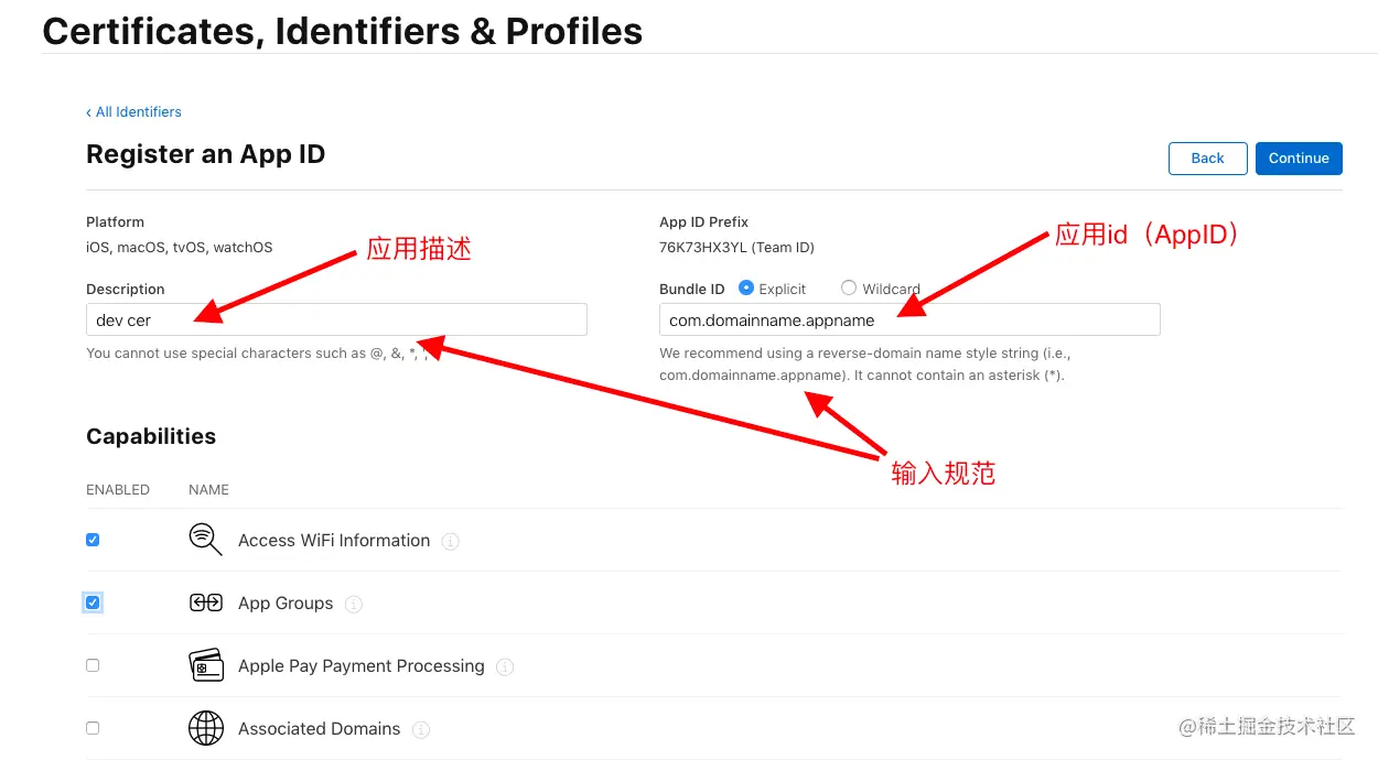 4.3 填写应用描述、应用id,填写规范参考输入框下面描述