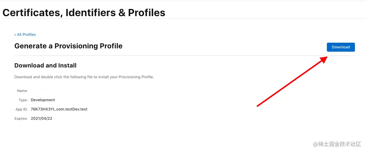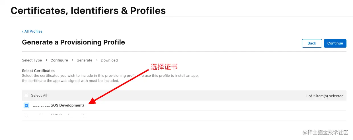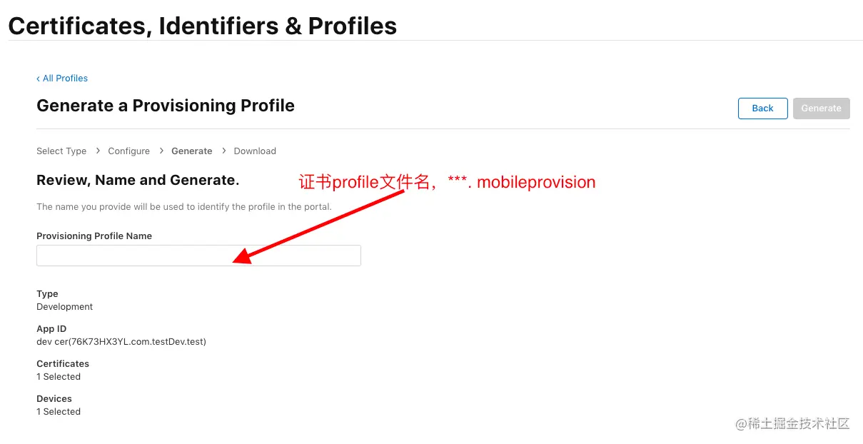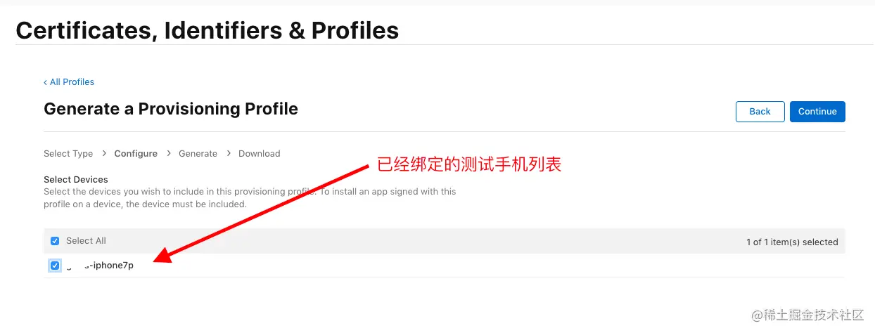 Step6:生成证书profile文件(这步需要提供上面的App ID、私钥证书、绑定设备)