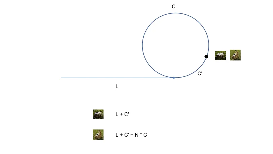 L + C' + N * C - 因为快指针🐰的速度是慢指针🐢的两倍, 所以有: