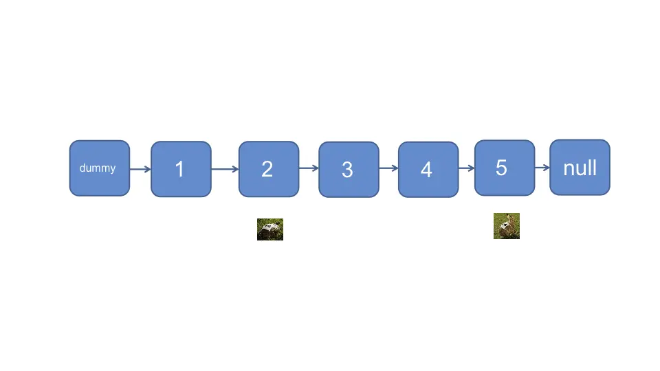 说人话, 龟兔赛跑的故事大家都应该听过, 可以把乌龟🐢比作慢指针, 兔子🐇比作快指针