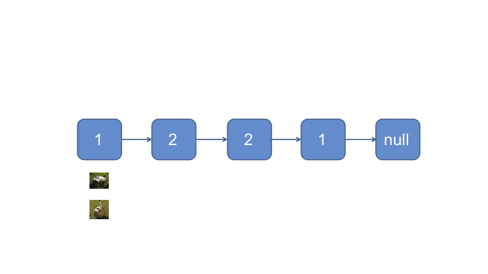 - 快指针🐰依次访问下下一个节点, 直到快指针🐰没有下一个节点(奇数链表)或者下下一个节点(偶数链表), 此时已完成了前半截链表的翻转