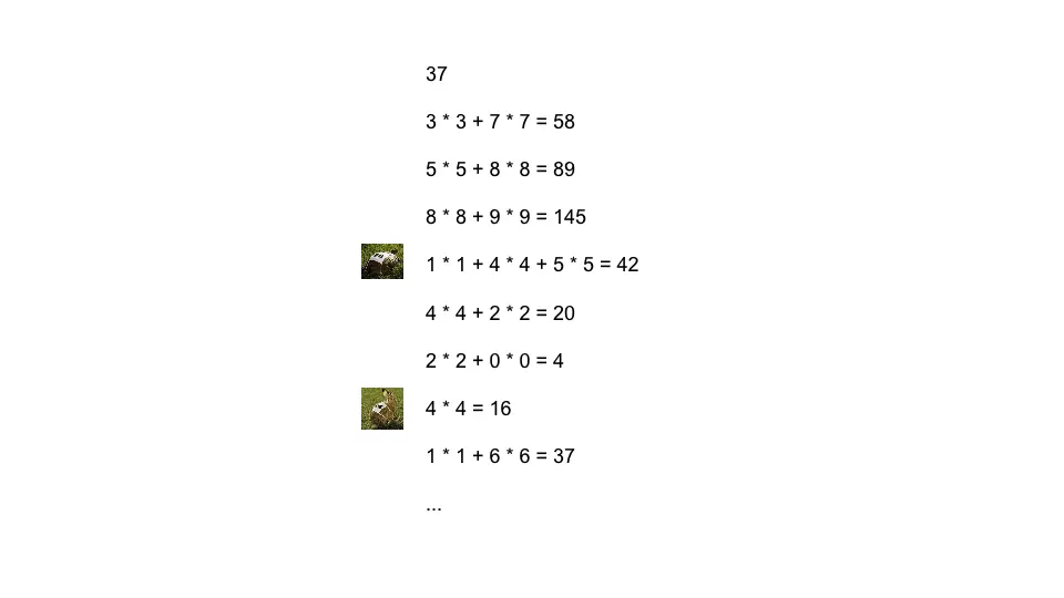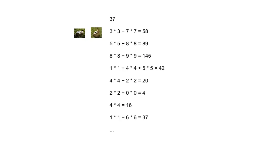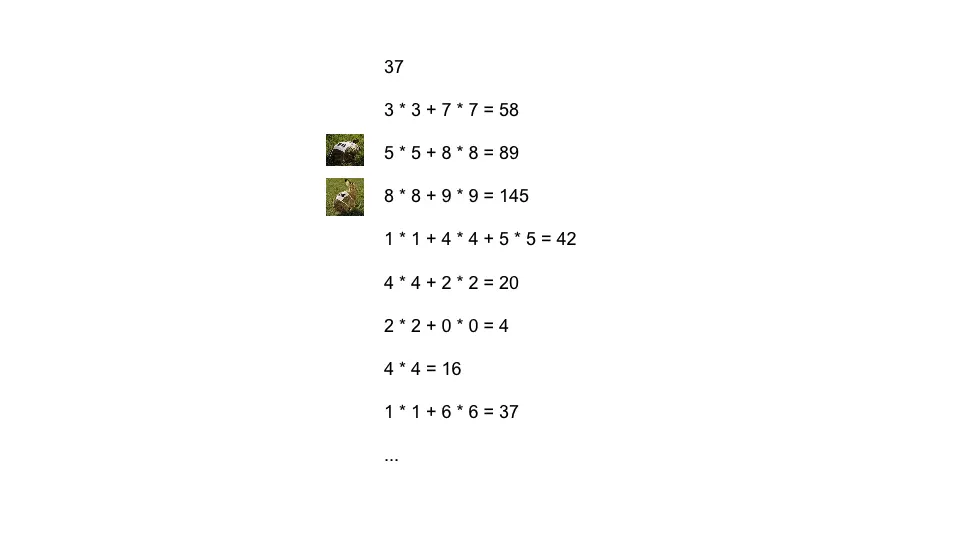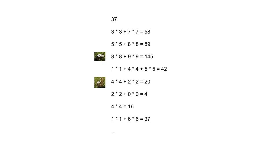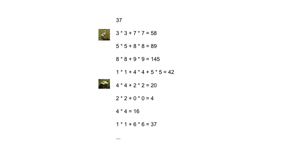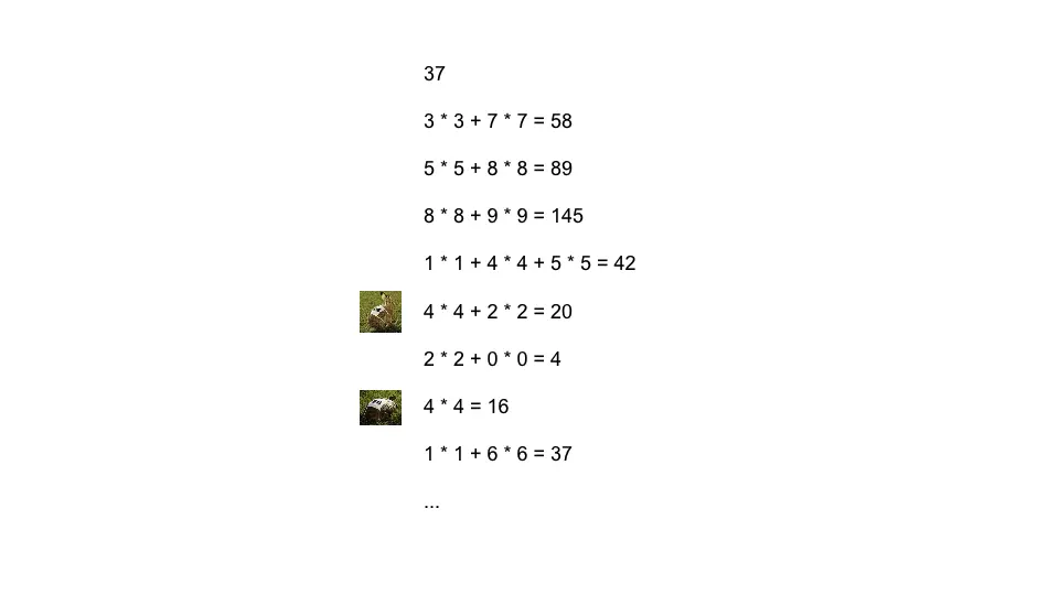 如37这个数, 对其反复的求每位的平方和会进入循环, 而且进入循环时其值不为1
