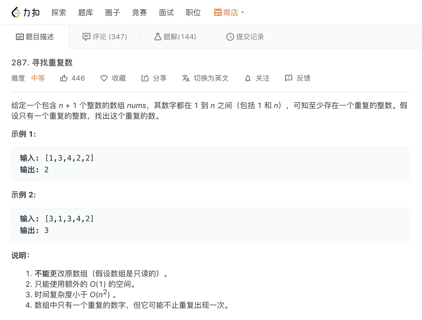 如示例1中的[1, 3, 4, 2, 2]