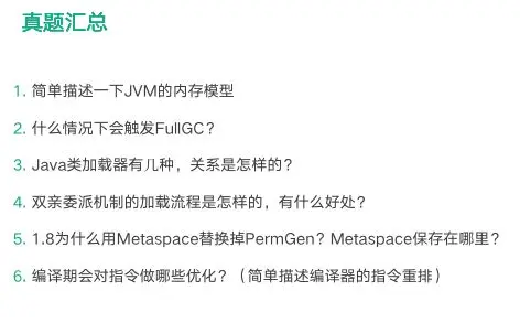 总结 JVM 相关的面试真题,第一部分真题如下,课后可以重点练习。