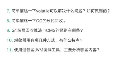 - 第 7 题 volatile 要重点回答强制主内存读写同步以及防止指令重排序两点。