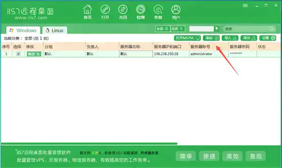 该组件一经推出受到了很多用户的拥护和喜好,所以在WINDOWSXP和2003中微软公司将该组件的启用方法进行了改革,我们通过简单的勾选就可以完成在XP和2003下远程桌面连接功能的开启。当然随着时代的进步,我们操作管理的模式也在不断的更新。为了更方便的我们管理我们的服务器,越来越多的人都会用到远程桌面管理连接服务器,让我们更方便跟简洁的用一台电脑来批量操作我们的VPS服务器,现在IIS7远程桌面管理这是我觉得比较好用的一款程序。