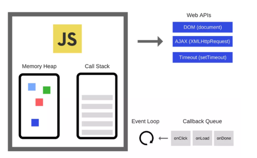 上图是一张 JS 的运行机制图,Js 运行时大致会分为几个部分: