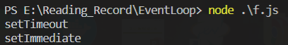 const fs = require('fs')fs.readFile(__dirname, () => { setTimeout(() => { console.log('setTimeout') }, 0) setImmediate(() => { console.log('setImmediate') })})
