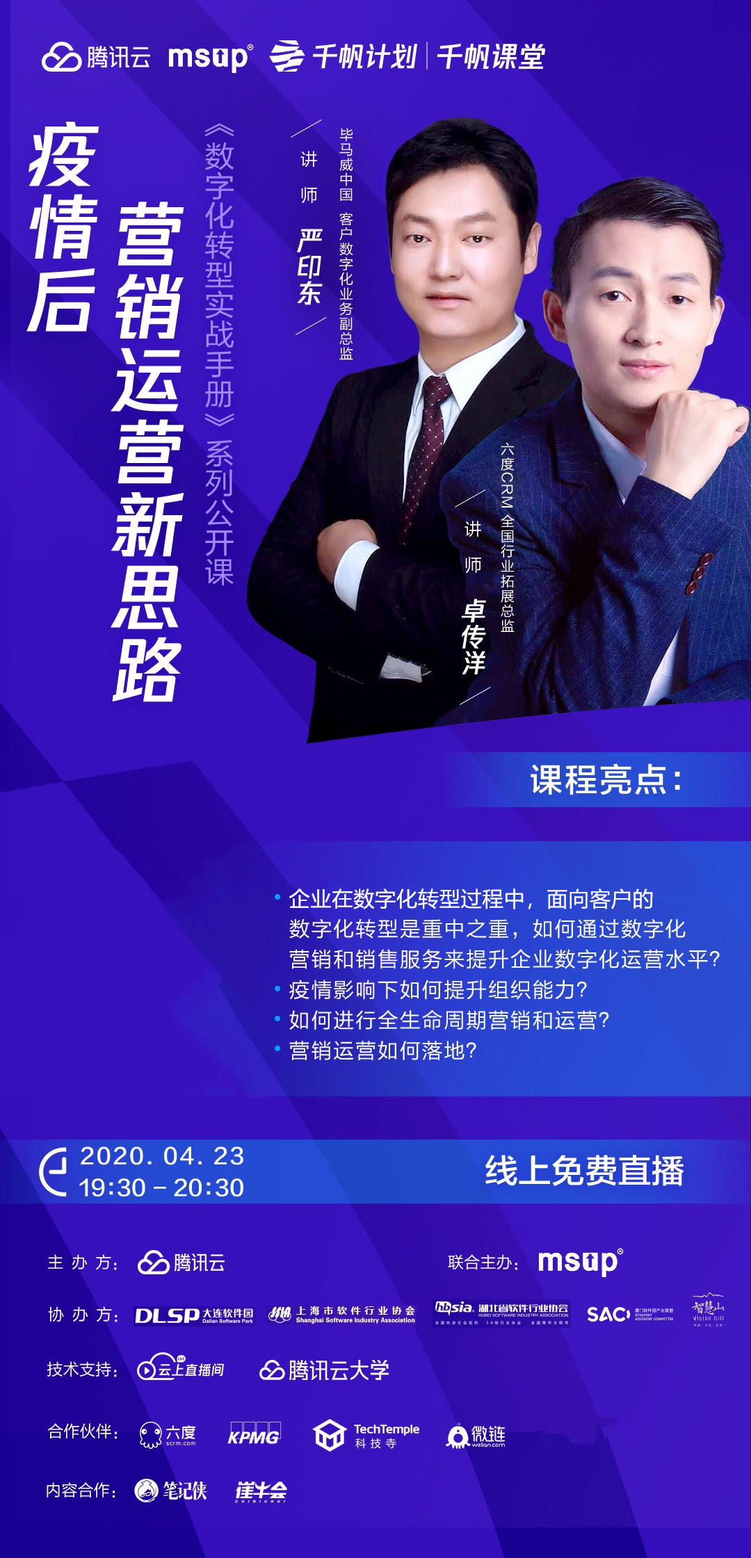 明晚,六度CRM全国行业拓展总监卓传洋、毕马威中国客户数字化业务副总监严印东也将与大家共同关注生意成长,分享如下话题: