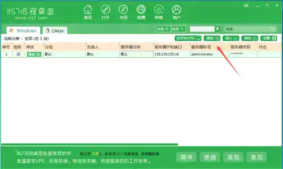该组件一经推出受到了很多用户的拥护和喜好,所以在WINDOWSXP和2003中微软公司将该组件的启用方法进行了改革,我们通过简单的勾选就可以完成在XP和2003下远程桌面连接功能的开启。当然随着时代的进步,我们操作管理的模式也在不断的更新。为了更方便的我们管理我们的服务器,越来越多的人都会用到远程桌面管理连接服务器,让我们更方便跟简洁的用一台电脑来批量操作我们的VPS服务器,现在IIS7远程桌面管理这是我觉得比较好用的一款程序。