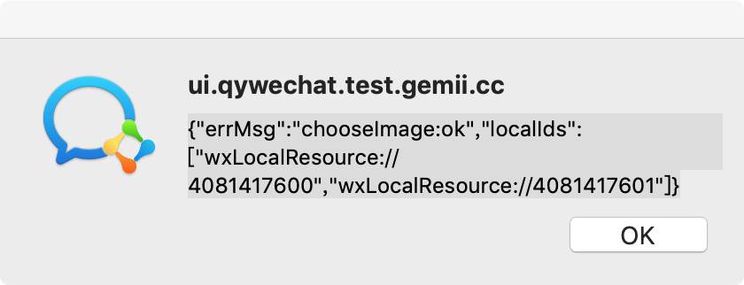 {"errMsg":"chooseImage:ok","localIds":["wxLocalResource://4081417600","wxLocalResource://4081417601"]}