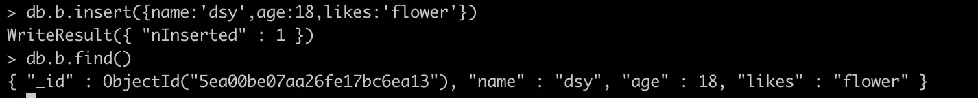 db.b.save({name:'dsy'})