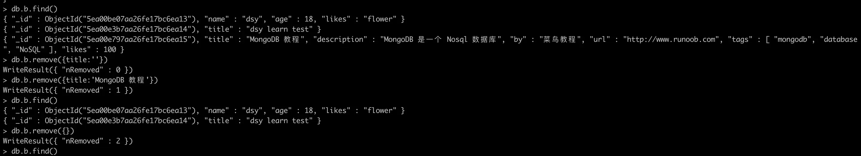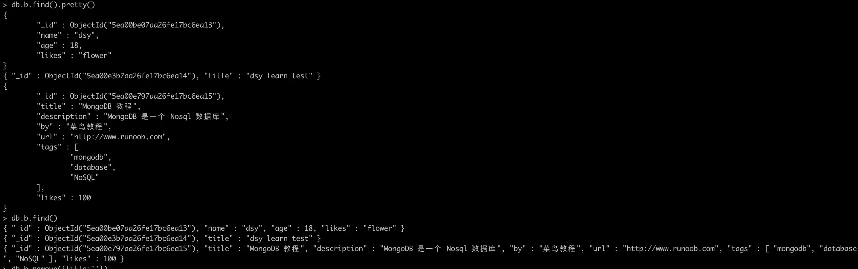 db.b.insert({title:'monogodb',age:18})