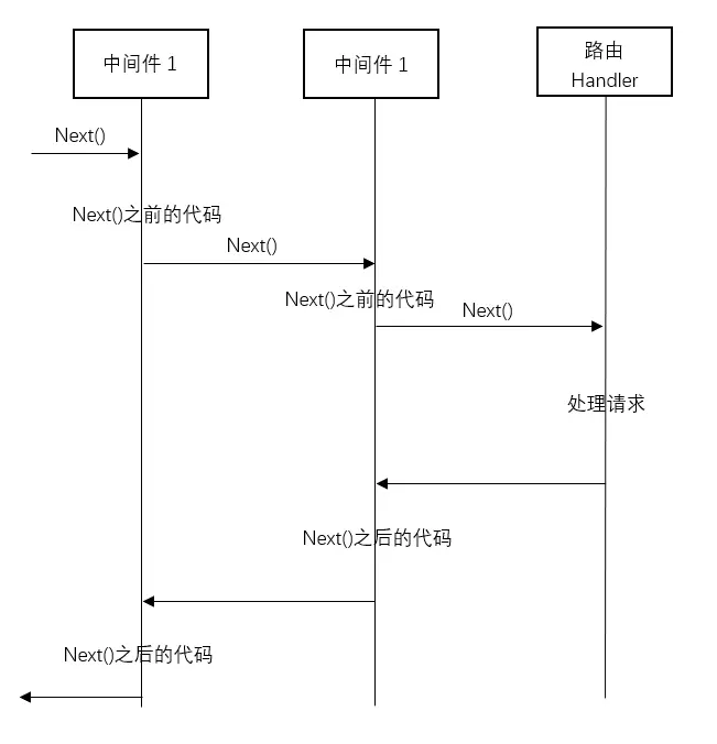 并且,中间件在前面,路由Handler在后面。注意,这个顺序很重要。
