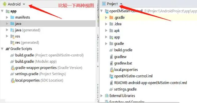 首先把自己的应用切换到 Android 视图,将其他人项目切换成 Project 视图