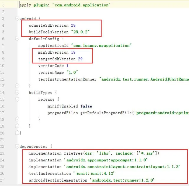 🐖这个文件里面会有 targetSDKVersion 以及添加的依赖,所以一般项目不能直接复制过去。修改一下几处