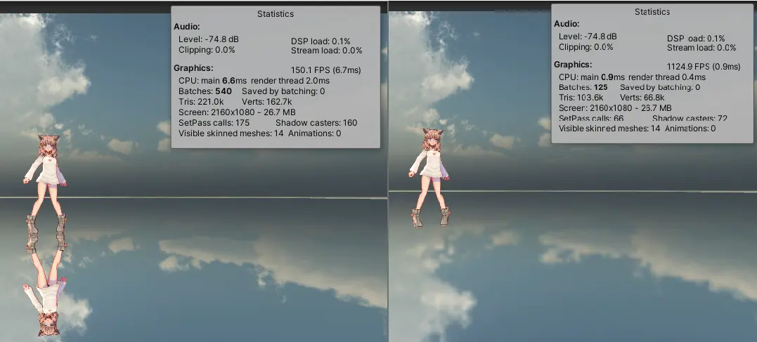 可以看到,如此一个简单场景,打开探头实时渲染后,drawcall从125翻到了540。