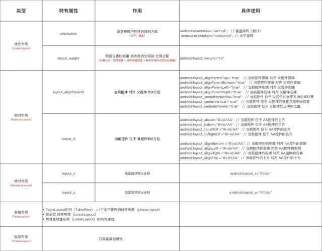 14、请例举Android中常用布局类型,并简述其用法以及排版效率