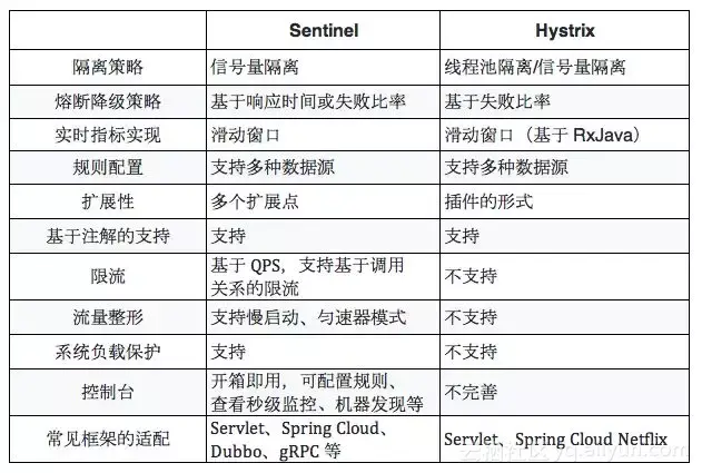 Sentinel 和 Hystrix 的熔断降级功能本质上都是基于熔断器模式(Circuit Breaker Pattern)。Sentinel 与 Hystrix 都支持基于失败比率(异常比率)的熔断降级,在调用达到一定量级并且失败比率达到设定的阈值时自动进行熔断,此时所有对该资源的调用都会被 block,直到过了指定的时间窗口后才启发性地恢复。上面提到过,Sentinel 还支持基于平均响应时间的熔断降级,可以在服务响应时间持续飙高的时候自动熔断,拒绝掉更多的请求,直到一段时间后才恢复。这样可以防止调用非常慢造成级联阻塞的情况。