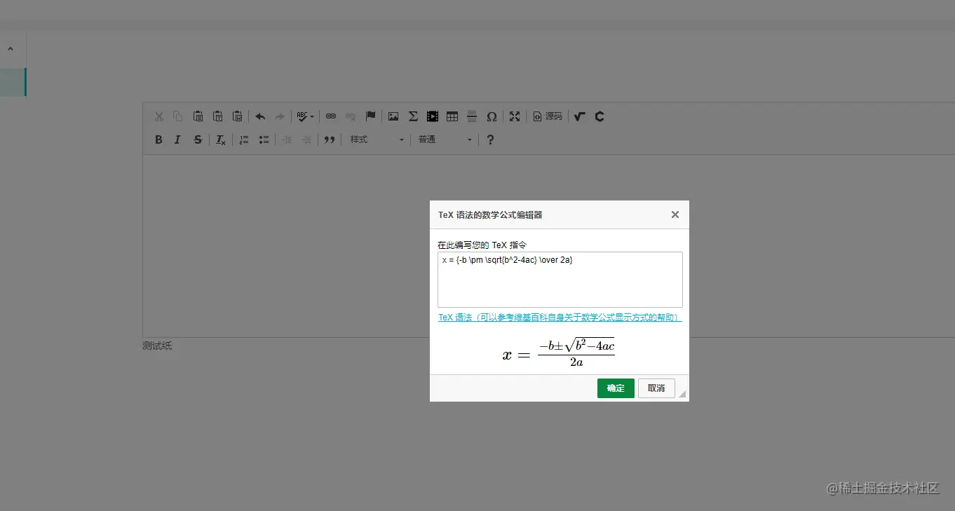 1.下载mathjax插件包 官方插件市场或者是自定义配置插件选择 2.static/ckeditor/plugin 配置 config.mathJaxLib = '//cdnjs.cloudflare.com/ajax/libs/mathjax/2.7.4/MathJax.js?config=TeX-AMS_HTML'