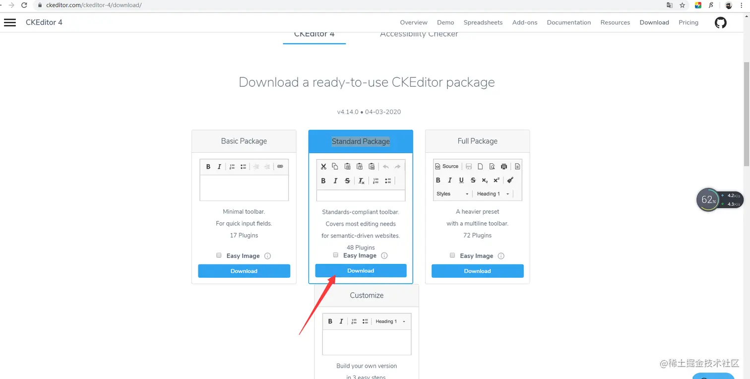 1.在官网下载ckeditor.com/ckeditor-4/… 按照需求选择版本,我选择的是标准版(Standard Package)
