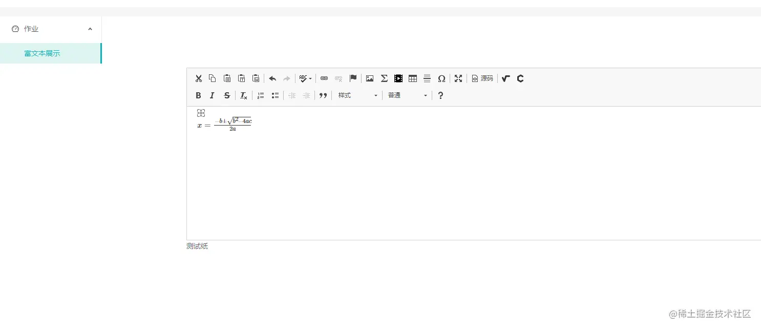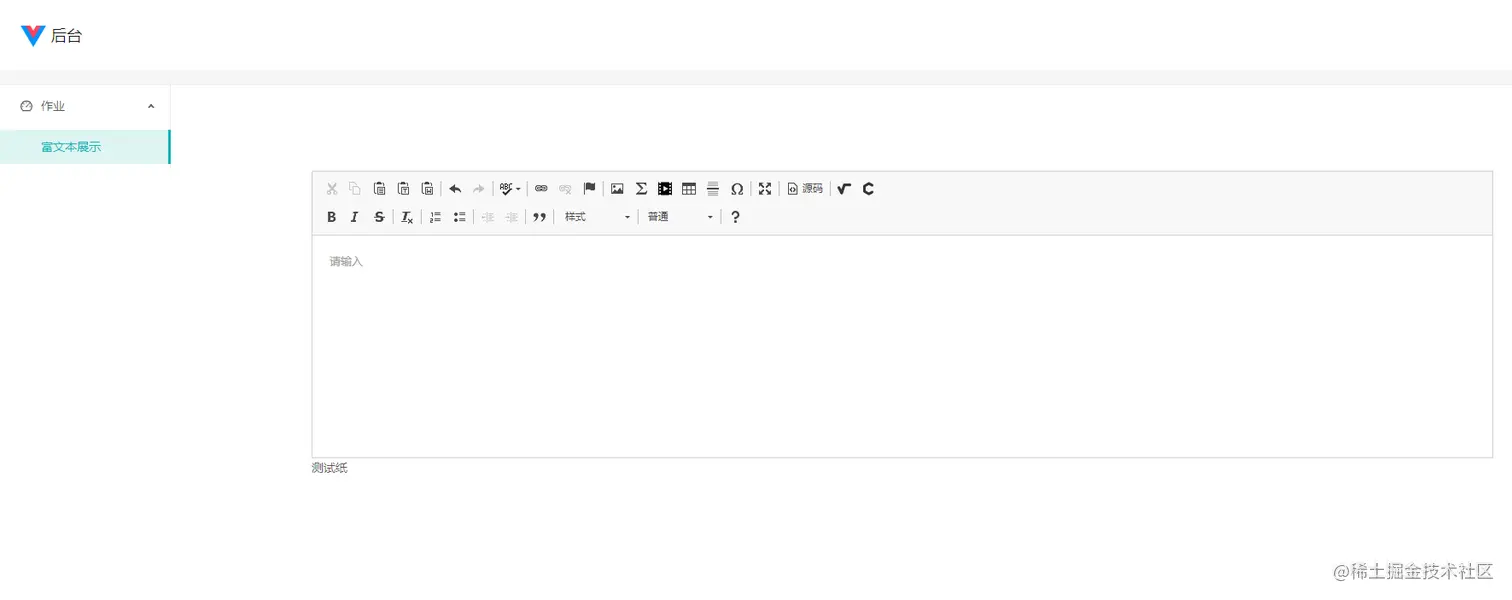 5.实现的效果如下:(一个简单的ckeditor4富文本就搭建好了,)